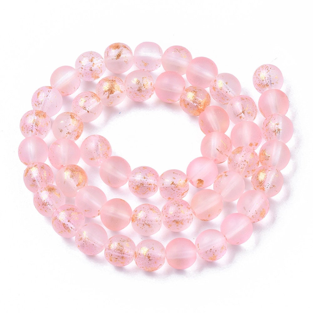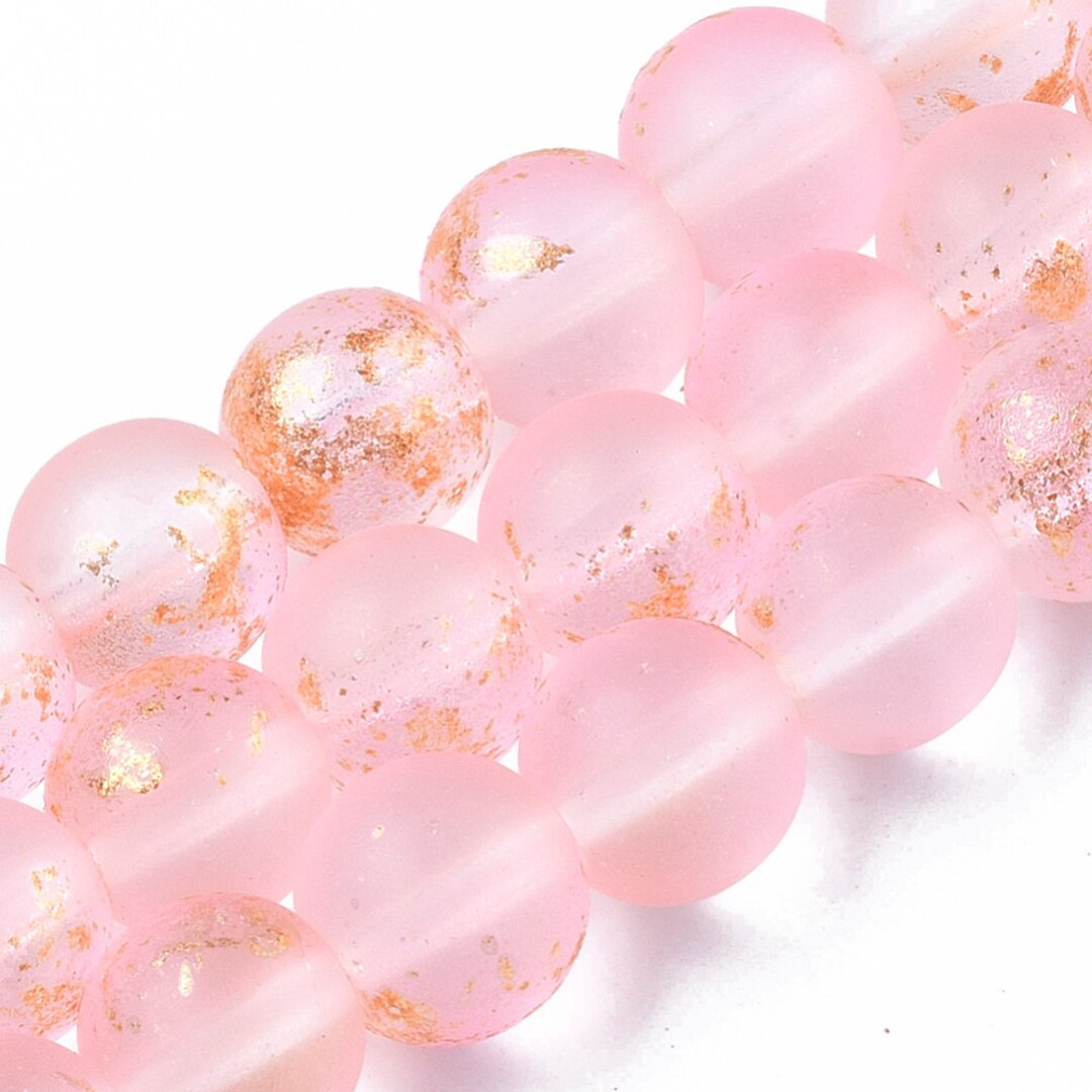 Bead Lot 5 Strand 8mm Round Frosted Glass Spray Painted With Golden Foil Pink Mp6 Etsy Australia